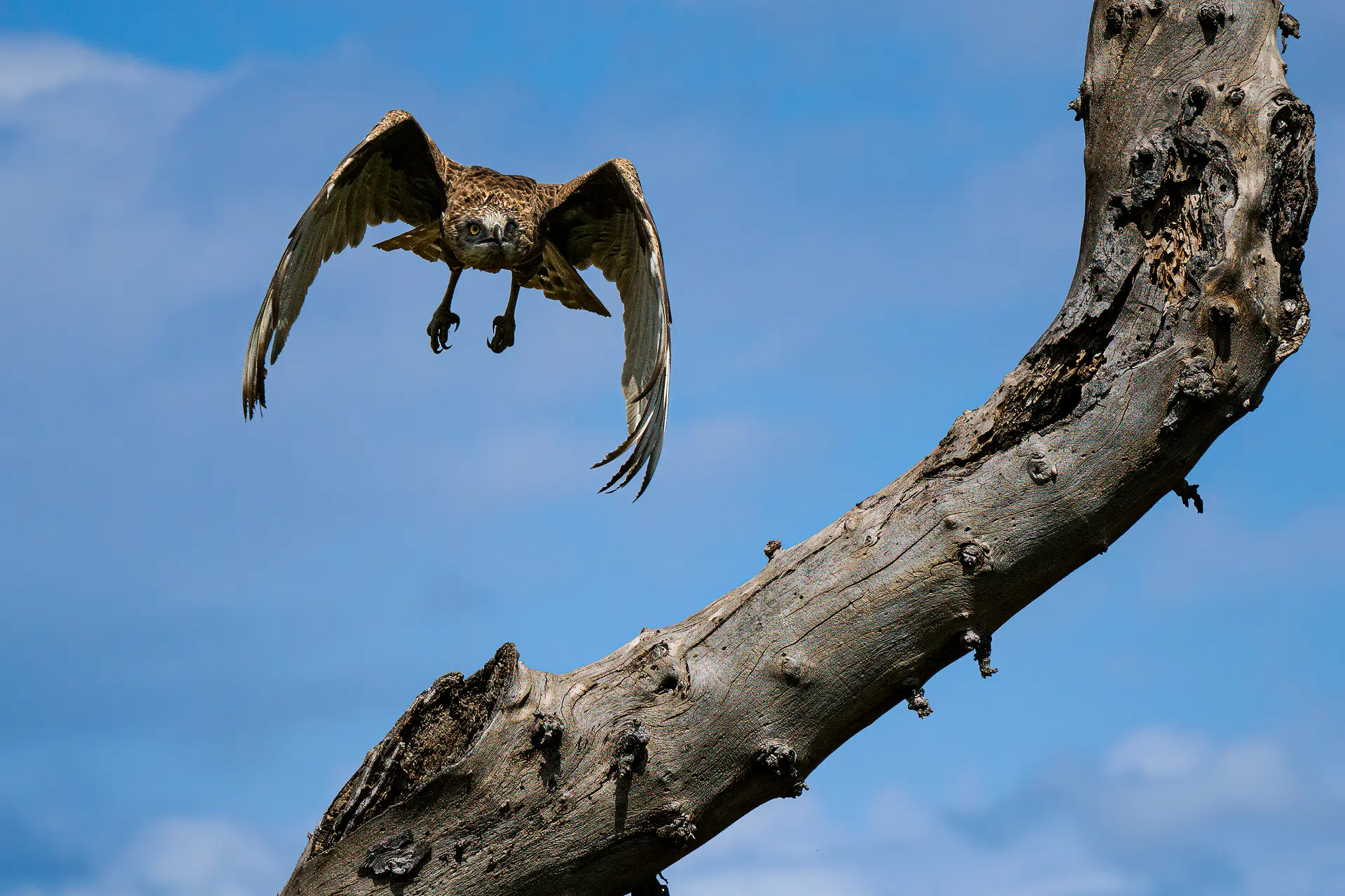 De roofvogel fungeert daarbij als verbindend element — tussen lucht en aarde, tussen kracht en fragiliteit, tussen individu en ecosysteem. Binnen dit bredere fotografische verhaal sluiten deze beelden naadloos aan op andere thema’s zoals vogels in hun leefomgeving, bijzonder licht en de onderlinge samenhang van het Afrikaanse wild.